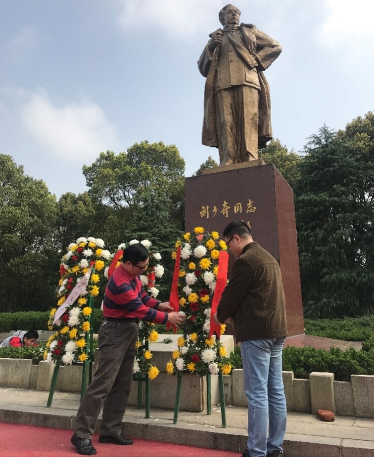 出发,于上午10时许抵达刘少奇故里。参加本次活动的教工党员和教职工列队向刘少奇铜像敬献了花篮,院党委书记胡建国、院长彭祝斌整理了花篮缎带。接下来,全体教工党员肃立刘少奇铜像前,向伟人三鞠躬,表达缅怀之情,并庄严高举右手,面向党旗重温了入党誓词。
