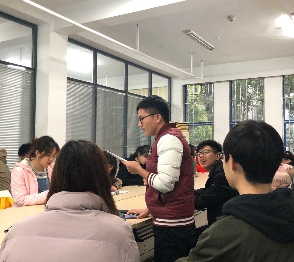 接着来自17级的王世鑫同学也发表了自己的见解。他说:“作为未来的准新闻人,我们应当将“从群众中来,到群众中去”的精神贯彻到我们的工作中,拒绝空谈,脚踏实地做新闻。”同时他还认为,作为湖大的学生,应该秉持“实事求是,敢为人先”的校训,并将其践行到生活和学习中。