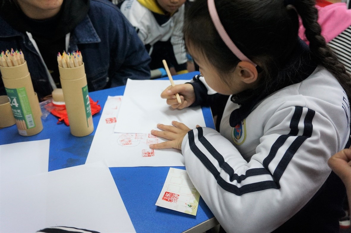 随后,两名志愿者带领着小朋友们来到另一间教室开展余下五个活动,小朋友们需要完成五个环节,每个环节完成都有一个印章作为奖励。在这里,小朋友们展开想象,认真思考,以绘画的形式表达心中对水世界的向往,在环保知识问答的大比拼中了解环保知识,将小垃圾投入正确的自制垃圾箱中,讲述自己、亲友的环保行为,在卡片上为自己定下了保护环境的小目标。