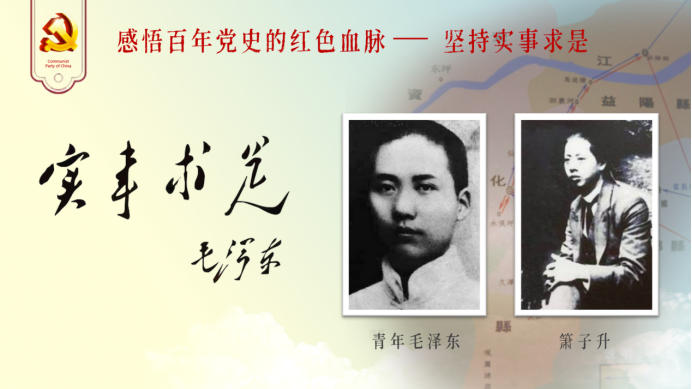 中国共产党成立后,作为早期共产党员的毛泽东,特别重视调查研究,掌握第一手资料,在调研的基础上形成决策。1943年,毛泽东在延安为中央党校题写了“实事求是”校训。1945年党的七大旗帜鲜明地将“实事求是”作为党的思想路线。