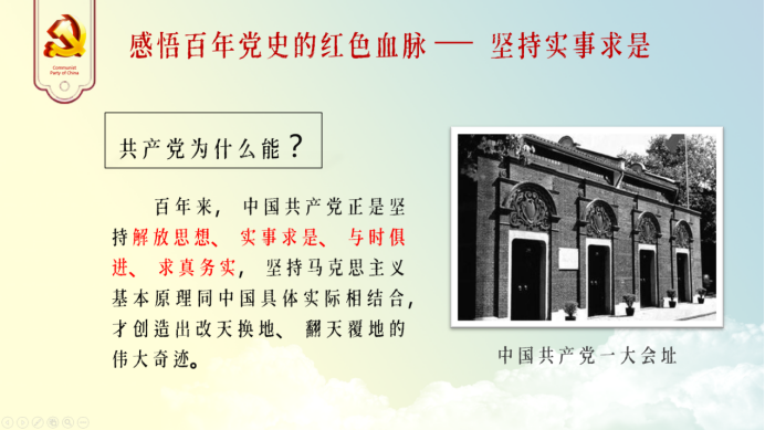 “共产党为什么能呢?当年在石库门,在南湖上那么一条船,那么十几个人,到今天这一步。这里面的道路一定要搞清楚,一定要把真理本土化。”回望百年党史,才能深刻体会到,找到一条正确道路是多么不易。百年来,中国共产党正是坚持解放思想、实事求是、与时俱进、求真务实,坚持马克思主义基本原理同中国具体实际相结合,才创造出改天换地、翻天覆地的伟大奇迹。
