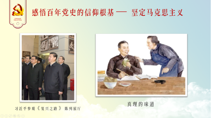 园里,总书记在对历史的探寻中,重温红色经典、讲述感人故事、阐释党史启迪,为我们学史明理、学史增信、学史崇德、学史力行树立了光辉典范。