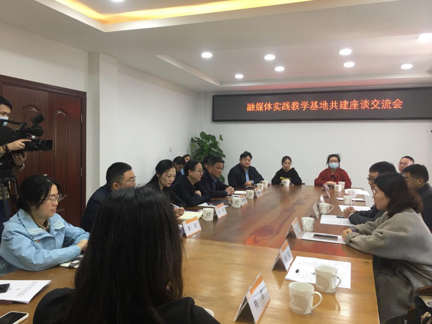 相关系部负责人与师生代表等,共同见证了融媒体实践教学基地的签约与揭牌仪式。