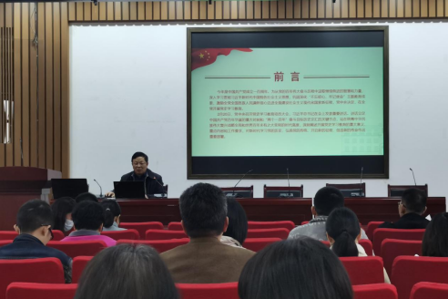 党史学习宣讲团成员胡建国作宣讲,全体在校教职工党员参加了此次学习。