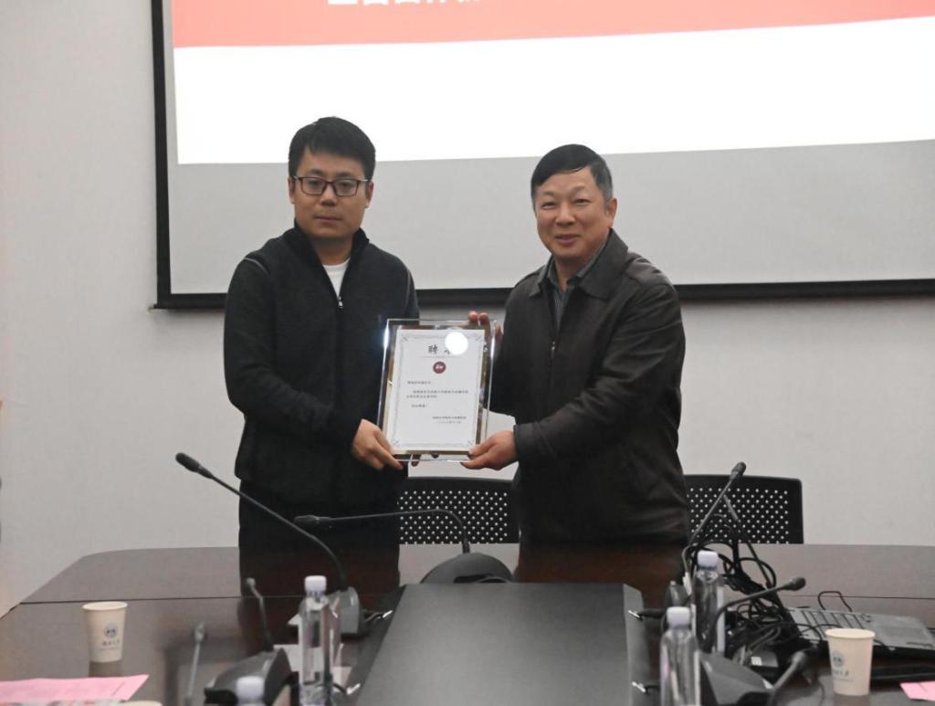 胡建国书记(右)为安超(左)颁发聘任证书