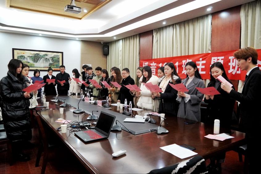 副校长谢赤,新传院党委副书记李洪玉,学工办主任、18级辅导员刘佳,播音1801班班主任梅慧,播音1801班全体同学出席会议,会议由播音1801班李东泽、王嘉琪主持。
