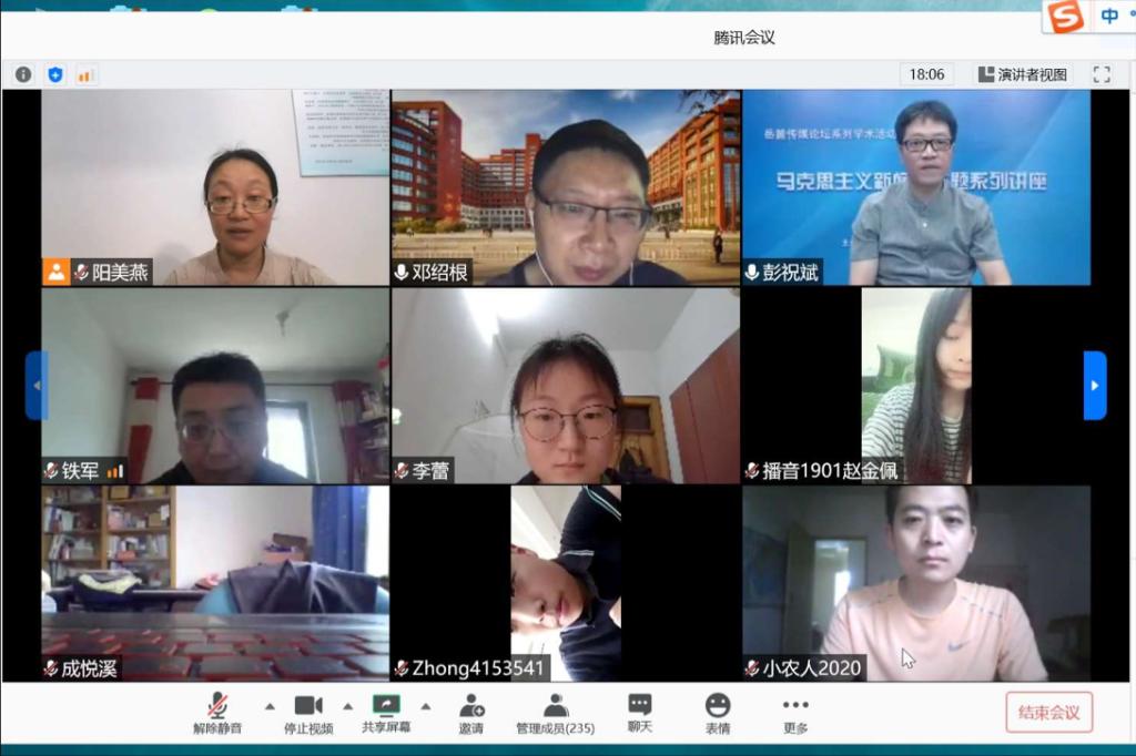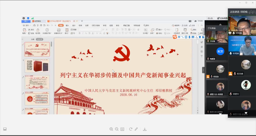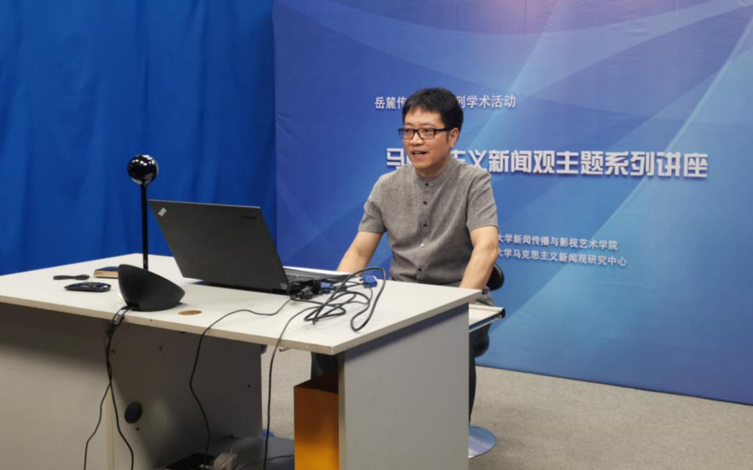 教授、中国新闻史学会联席秘书长、中国人民大学马克思主义新闻观研究中心主任邓绍根教授担任主讲,我院院长彭祝斌教授主持,新影院和学界300余名师生在线参与。