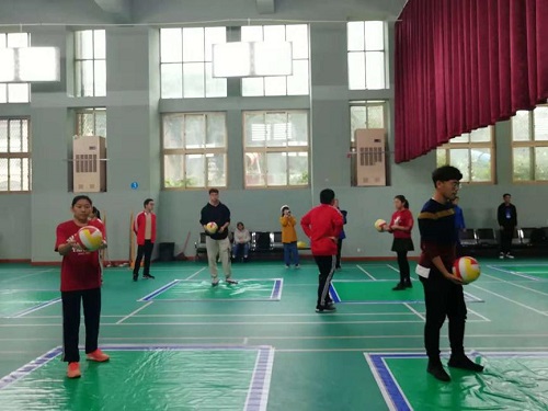 乙组排球垫球比赛。检录时阴云密布,凉风瑟瑟,参赛选手们丝毫没有被消灭斗志。在进入馆内候场时,团队还组织了赛前的练习,积极投入在此项趣味性突出的活动中,不失认真态度。当计时开始,他们全神贯注,力争持久。可以说,他们垫起的不仅仅是排球,更是对新闻传播与影视艺术捕鱼大作战
