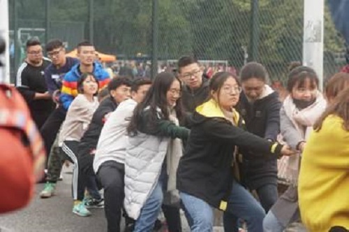 上午的拔河比赛备受关注。尽管我院在第一轮败给物电院,但士气不减,在第二轮成功击败环境院,夺得乙组第二名的好成绩。