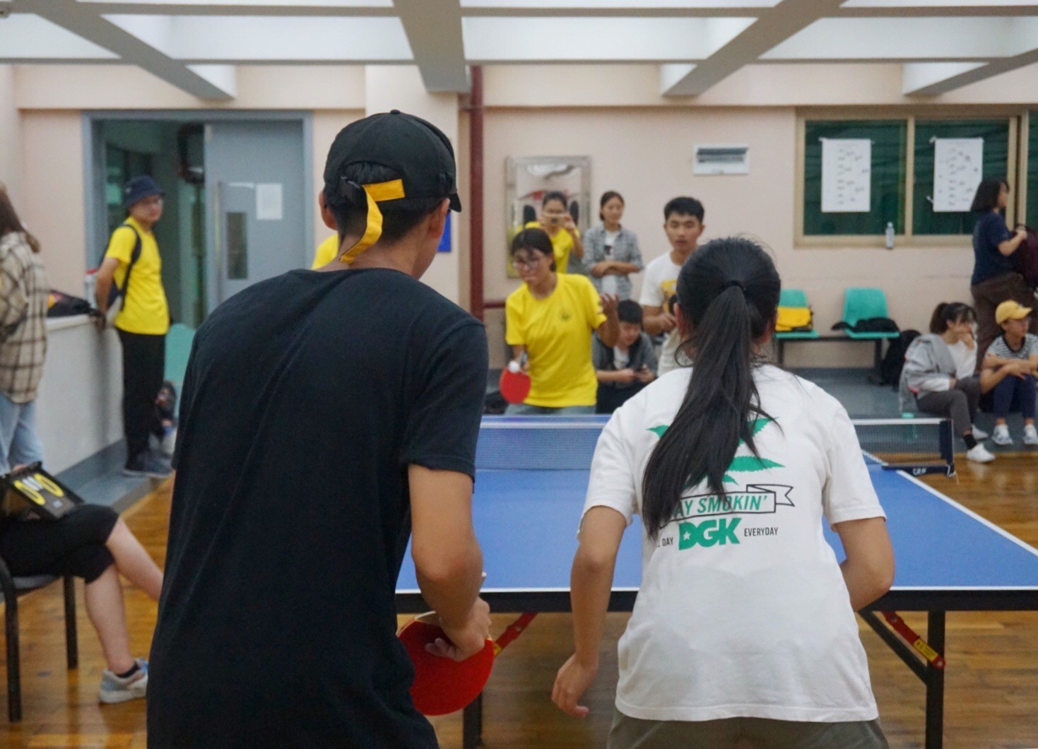 新生杯乒乓球男女混双比赛在体育场举行。我院分别与土木工程捕鱼大作战