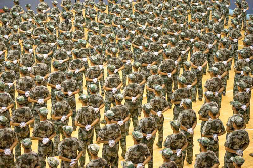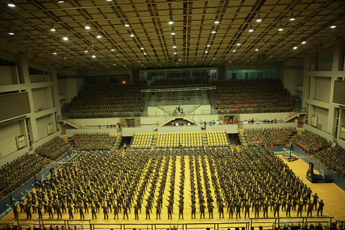 2018级军训歌咏比赛在体育馆顺利举行,新闻传播与影视艺术捕鱼大作战