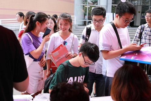 又是一年开学季。8月31日下午两点半,我院2018年研究生迎新工作正式展开。不到两点,我院在财院校区二教对面设置的迎新点前,已经陆陆续续有新生排队报道。