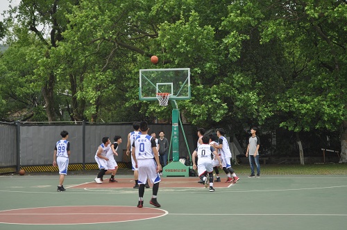 对战在南校区篮球场正式开始。距离比赛还有五分钟,但场上气氛已经十分热烈。“三步上篮郭一男!”“一男一男你最帅,新影女孩把你爱”“宇翔宇翔像光芒,谁人能比你闪亮”。观众们的呐喊让同学们在料峭春寒中感受到无比的热情,仿佛置身于NBA现场。