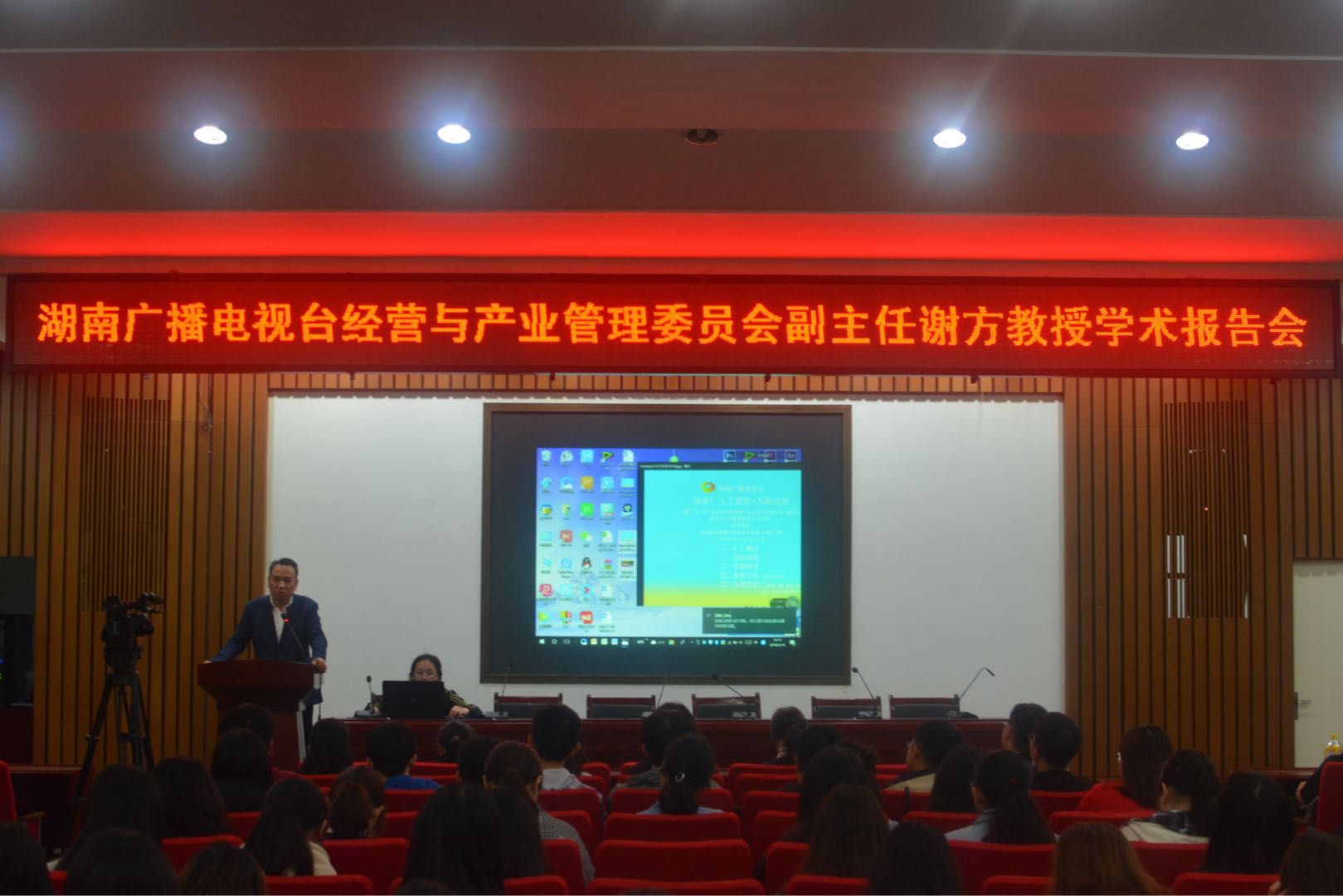 学术报告厅,与新影院师生面对面交流,分享自己在人工智能方面的认识和媒体工作经验。
