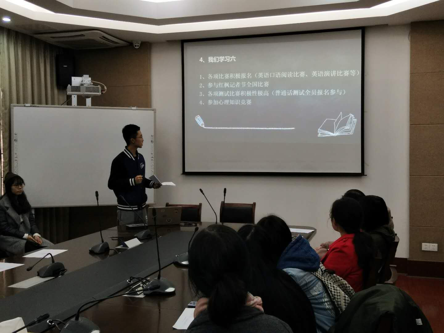 会议上,各班代表用精心准备的PPT、视频等多种形式展示了自己班级的特色,在到课率、挂科率、四六级通过率等学风建设方面和社团活动、专业实践等实践方面展现了班级工作情况。