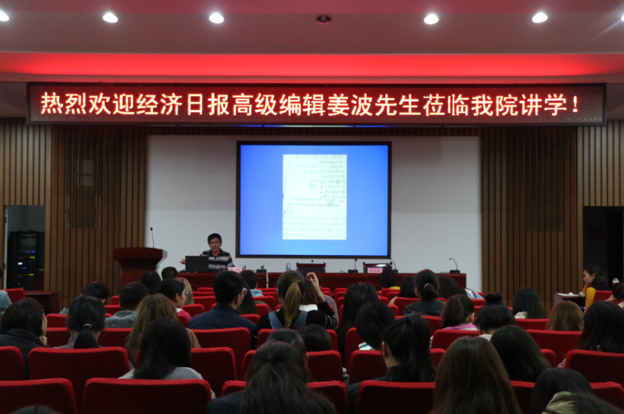 为研究生班授课。“姜波先生不仅是一位出色的记者,还是一位思想家,一位学者。”彭祝斌院长评价到。