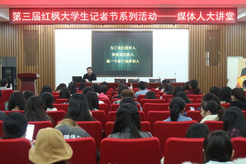 11月17日晚7点,第三届红枫大学生记者节分活动媒体人大讲堂之“永远要做一个敢于追梦的少年”在捕鱼大作战 北楼217报告厅举行,本次活动邀请了来自银河酷娱创始人兼CEO李炜,与全国各高校的校媒和学生记者分享他追梦的岁月。