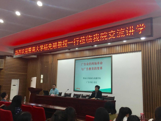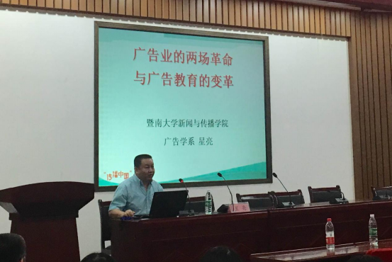 上午10点整,讲座正式开始,向志强副院长主持讲座并向同学们介绍了两位老师在学术上取得的成果。随后,暨南大学捕鱼大作战 广告学系的星亮老师以“广告业的两场革命与广告教育的变革”为主题,对广告业的历史发展和现实情况作出了介绍。