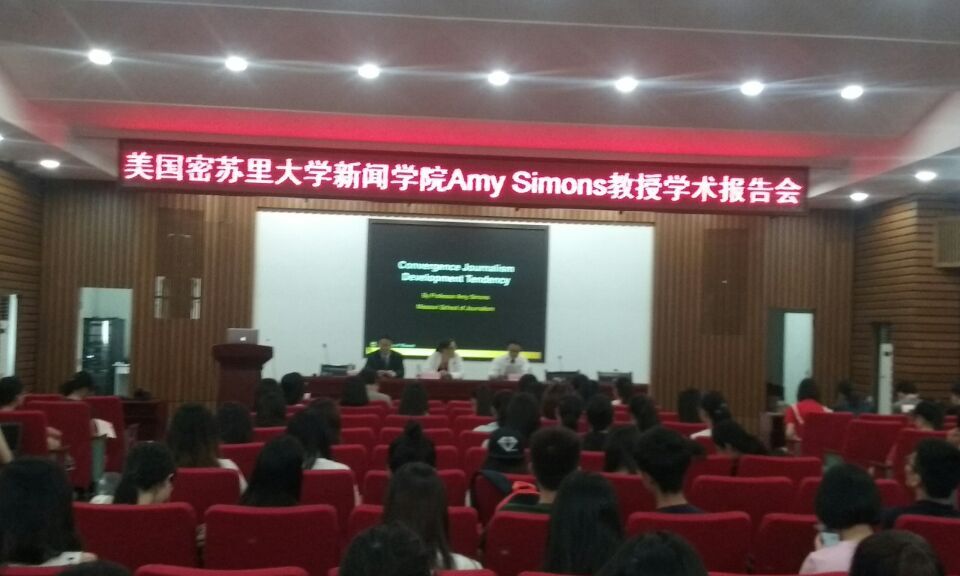 媒介融合系副教授艾米·西蒙斯(Amy Simons)莅临北楼217,以“媒介融合新闻学的发展趋势”为主题举办了一场别开生面的学术讲座,讲座由新闻传播与影视艺术捕鱼大作战