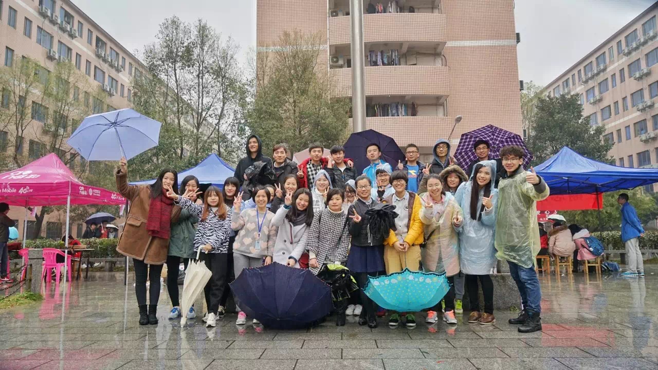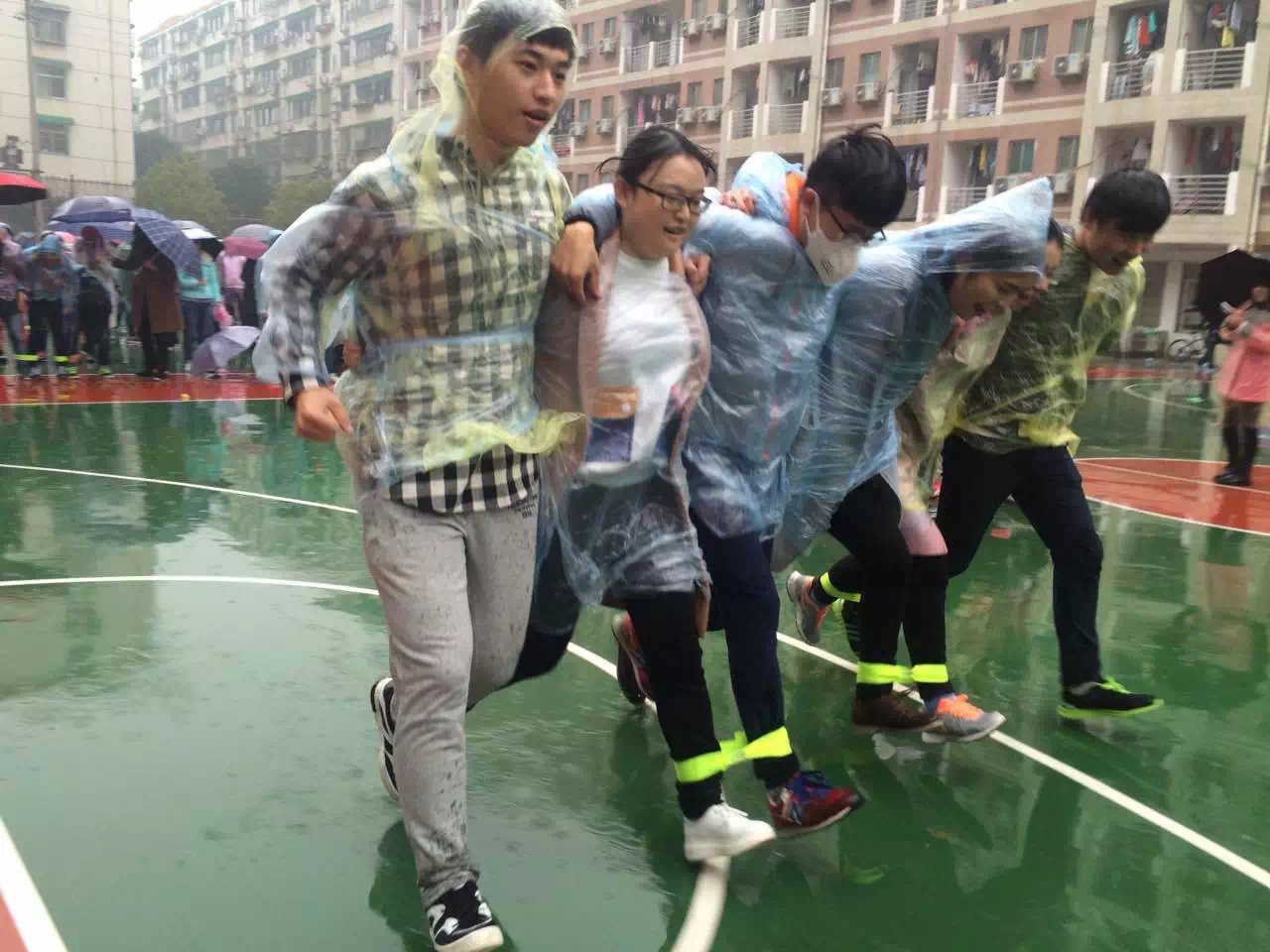 比赛时大家积极投入比赛,尽力完成每个项目的角逐。比赛过程中场内场外一样火热,欢声笑语也不断发出。在瞎子背瘸子的比赛中,负责背人的同学被蒙上了眼睛,旋转3圈后再背着队员出发。由于看不见,走的歪七扭八的选手们闹出不少乌龙,惹得场边发出阵阵笑声。六人七足的比赛中,我院研究生在“一二一”的整齐口号中齐步向前,勇夺第一名。螃蟹接力跑项目也在同学们的努力下夺得头名。此外,还有托球跑、翻山越岭、拔河等趣味项目,每个同学都积极投身到各项比赛中。雨未停过,同学们的热情也一直高涨。