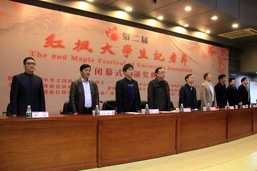 闭幕式及颁奖典礼上,湖南省新闻工作者协会秘书长简人卫给予本届红枫大学生记者节高度评价,对大学生记者作为职业新闻工作者的预备军,能够坚持奋战在校园新闻的第一线、用实际行动捍卫新闻理想表示肯定和赞扬。他强调,随着互联网时代的发展,对有新闻理想和新闻素养的专业记者有了更全面的要求。