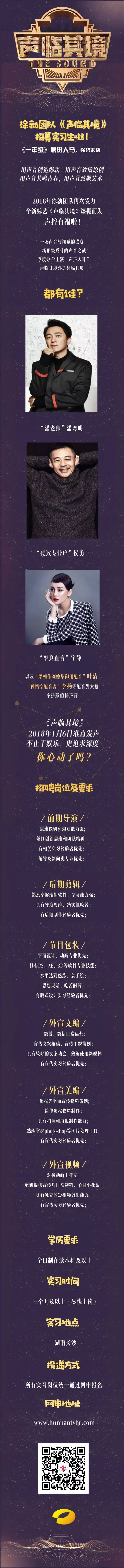 【招聘】湖南卫视徐勍团队《声临其境》招募实习生啦!